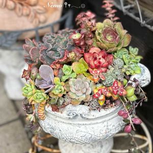 昨年仕立て直したグロブローサ×ミニマ 子株がたくさん出て来てくれました🌱今年の紅葉は楽しめそうです ホワイトラインの群生 大きなミルク缶で作られたプレゼントのリメ缶を傷付けたくないので…植え替えはどうしようかな💦 高砂の翁が焦げました😭 いろんな鉢の置き場所を変えている途中、1番日当たりの強い棚の上にうっかり置き忘れてしまいました(ToT) 最後は夏の間、手に取らなかった鉢😂裏側がすごい事になってました😆