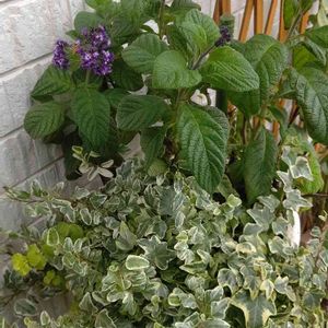 この前の寄せ植えの子 ヘリオトローブ🎶 【ヘリオトロープの育て方・ポイント】(webから引用) 日当たり・置き場所 日当たりを好み特に開花には日照が必要。 夏期の強い直射日光は苦手、半日陰や風通しの良い場所に移動させる。 用土 肥沃な土壌を好む。市販の培養土で育つ。 水やり 水やりには注意!。水枯れを起こすと葉が焼けたように黒ずむ。 肥料 肥沃な方が花付きが良くなる。開花期中は春と秋に有機肥料を与える。 病害虫 特に目立った病害虫の被害は無し。 選び方 葉のグリーンがきれいな植物。葉が黄ばんでいないものを選ぶ。花芽が多く上がっているほうが購入後も長く花を楽しめる。 植え付け 真夏と真冬を避けた春か秋の暖かい日に行います。植え付け後はたっぷりと水を与える。 摘芯(摘心)・摘果 開花期の長い花。開花期中は花が終わったらまめに花ガラを摘み取ることで、次々と花を楽しめる。 剪定・切り戻し 春の開花が一段落した頃に、整える意味も含めて花が終わった枝を切り戻す。 植え替え・鉢替え 春か秋の暖かい日に植え替えをします。植え替え後はたっぷりと水を与えます。 夏越し 夏の直射日光が苦手。風通しの良い半日陰や午後の西日を避けられるような場所に移動。 冬越し 多年草のヘリオトロープは霜を避けて管理するようにします。暖地では越冬可能。 増やし方(株分け、挿し木、葉挿し) 挿し芽で増やせる。