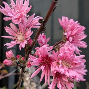 菊桃が咲きました🌸 濃いピンク色でとても綺麗💜