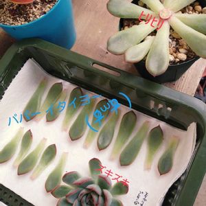 13日と14日は葉挿しの日なんですね〜。 勝手に参加しちゃいます😆 月兎耳の葉挿しです。 色が付いてきて、耳らしくなってきました♪