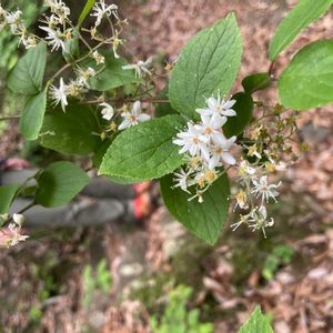 マルバウツギ アジサイ科ウツギ属 落葉低木 別名はツクシウツギ 本州の関東地方以西から四国、九州に分布。 日当たりの良い山野に多く見られる。 植えられることは稀である。 花期4〜5月 花は白い小花が円錐状に集まって上向きに咲く。 基部にオレンジ色の花盤がある。 花弁は5弁花で直径1cm前後。 ④葉は楕円形から卵形で、他のウツギと比べると丸みがある。葉の表面はざらつく。 秋には紅葉し、橙色から赤色に染まり、ウツギの仲間の中では鮮やかに色付く。 🏷️白い水曜日♡ 🏷️白い貴婦人✨ に参加させていただきます。