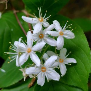 高尾山のウツギ① 白いミツバウツギの花とマルバウツギの花が咲き始めました♡🌿 【ウツギとは枝の髄が中空になっている樹の事を言い、同じウツギという名前でも科も属も全く違う別の種類の樹です】 1️⃣2️⃣ 白いミツバウツギ(三つ葉空木)の花 山地の沢沿い等に生える落葉低木です。 葉は対生し3出複葉です。 若枝の先に円錐花序を出し、満開の時でも半開きで完全には開きません。萼片は5個で開出します。 花弁5個、雄蕊5個、花柱2個です。 ミツバウツギ科ミツバウツギ属 3️⃣4️⃣5️⃣ 雄蕊の可愛いマルバウツギの花 花は円錐花序に多数付きます。 5個の花弁は平開します。 雄蕊10個、花柱3個 アジサイ科ウツギ属