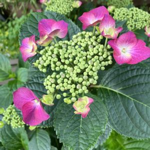 紫陽花の季節 山紫陽花紅、伊予獅子手毬、ガクアジサイ、咲いてます