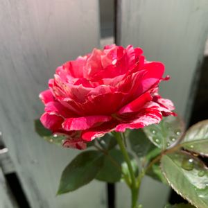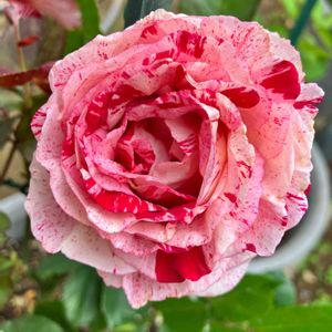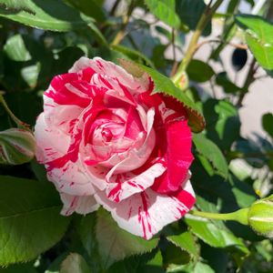 🌹センチメンタル FL 四季咲き 1997年アメリカ 赤と白の絞りのバラ🌹同じ株からですが、色が微妙に違って綺麗です。🥰 🌼赤いバラの花言葉は、 あなたを愛してます 愛情など。