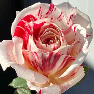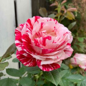 アメリカ 1997年 🌹🌹🌹 フロリバンダ 丸弁カップ咲き 赤と白のストライプの、フロリバンダローズです。 スパイスを含む甘く濃厚な香り。 紅白絞りの鮮やかな品種です。 大輪で房咲きとなり、様々な絞りを一房で 楽しめます。 耐病性があり、育てやすいので、どなたでも綺麗に花を咲かせる事が出来ます。 アメリカ カリフォルニア州にある名門 ナーセリーウィークスローズ社のバラです。 1997年には、オール アメリカン ローズ セレクションを受賞しています。 おはよう御座います^ - ^🤗🌧️☀️ 予想気温 16℃ 暖かく、ダウンジャケットはいらないみたいです。😆😃 今日も一日ガンバです。🤗🙏😆🙆♂️