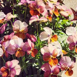 今朝のパンビオの寄せ植え🌸 よく咲いてます♪ 思い通りの整った寄せ植えにはほど遠いけど、お花とリーフの色合いが大人な感じで好きです〜☺️🤎💜 今日は、鹿児島のシャンドフルールさんに来ました!😆 素敵すぎる園芸店ですね〜✨✨✨