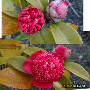 紅卜伴に似てますが、咲き進むとポンポン咲きのように広がることもある華やかな椿です。