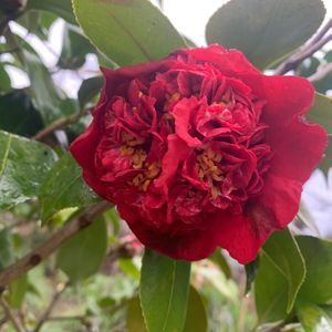 今日はまだ風が強くてお篭りです💧 昨日の日中は23℃でしたが、夜には霰が打ちつけ、落ち着かない天気に振り回されてます😱 先日の椿山に咲いていた南蛮紅。 ボリュームある獅子咲きの豪華な椿です。