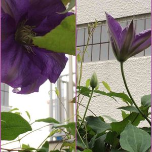 こんばんは🌃 やっと我が家のクレマチスさん1号咲いていましたょ^_^♡♡♡ でもマンション側に向いて咲いてたので、、😂 無理やりこちら側に棒で引っ張り出してパチリしましたが、何かスッキリしません😅 無理強いは、いけませんネ🤪