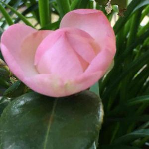 蕾は、いっぱいあったけど、なんか茶色くなってポトンと落ちてしまい、今朝見たらたった1つだけ可愛らしいピンク色の蕾が開きかけてた^_^♡♡♡