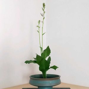 本日の自主練 生花一種生 ギボウシ 葉物が続きます🌿 先日upした燕子花は長葉物、こちらのギボウシは大葉物と言われています。 実はギボウシのお生花を生けたのは初めてかもしれません。やはり葉物のお稽古といえば燕子花とかアガパンサスが多いですね。グラジオラスもよく出てきます。 ギボウシなぜか当たらない😁 お生花の本には必ず載っているので、マイナーではないはずなのですが… そんな訳でお家で育てたお花で生けました。すこし葉っぱは小さめです。去年はお花が1本しか咲かなかったのでお生花には出来ませんでしたが、今年は3本のお花が咲いてくれました。 今年はアガパンサスも2本お花が咲いているので、こちらも今週中に生けたいと思います😊🌼🌿