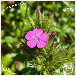 おはようございます😃 今日も皆さまにhappy〜💕 ハマナデシコのお花が咲いてきました♬花芽びっしり〜満開が楽しみです😍 ③職場の畑〜手前からハマナデシコ〜スイセンノウ〜ひまわり〜コスモス♬ ④私のイタズラ心❤️😆 紫陽花のお顔に耳はギボウシ🍃お目々はヤグルマギクです〜🤣 ⑤職場の紫陽花がキレイです😍✨