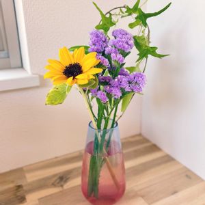 お花を生かすも殺すも自分次第 先週の金曜日に投稿した、ディーラーからのいただきものの(素人)フラワーアレンジ。 花瓶に生け直したけど、時間もたって傷んできたので、最後はフローティングフラワーにしました。ボタニカルな雰囲気に。 ちょっと手を加えればお花の寿命も長持ち。 ついでに家庭菜園のナスの一番花を摘んだので、こっそり混ざってます。