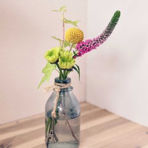 medeluさんの今週のお花です。 スプレーマムの形がうまく生けられなかったので、それぞれカットしたらだいぶこじんまりしちゃいました。