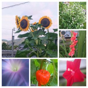 夕方になってもまだまだ暑いです🔥 朝は7時前に水遣り、キューリ、オクラ、ピーマン、ゴーヤの収穫を済ませてしまいました。 草引きは毎日繰り延べで草ボーボー💦 身長180cm超えのヒマワリがとても元気です! 白だけのつもりが、赤いグラジオラスが咲いていました。 ルコウソウはグングンつるが伸びて、雑草に巻き付いています。