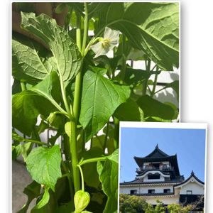 おはようございます。一昨年種を植えてやっと今年芽がで花が咲き小さい実が付き始めました❣️🎵次は🟥赤くなった時にUPしますね。 数日前に国宝の犬山城へ行ってきました! 新緑が綺麗でした、また、紅葉🍁🍁🍁時期になると更に美しくなると思います。