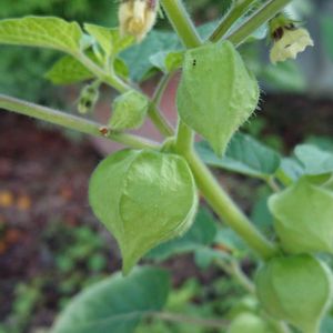 おはようございます😃 5月17日に花を投稿しました。 畑のホオヅキです。 たくさんの実が付いています。 中にはだいぶ大きなものもあります。🤔 昔、お盆のお供えに赤いホオヅキをよく見ました。 この分だと、7月中に赤く色づきそうです。 お盆まで持つでしょうか? 赤く色づいた姿を、また投稿したいものです。😁