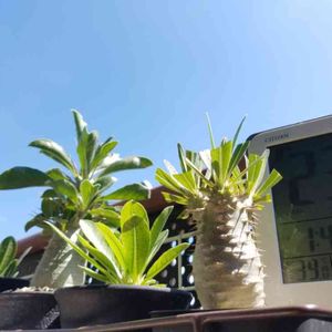 パキポディウムサンデルシー 白馬城 南アフリカ原産 マダガスカル産のパキポは寒さにはめっぽう弱いけど サンデルシーは 日本の越冬ならへっちゃら😋 でも何年かかるかなー あの魅力的な姿になるまでに💦