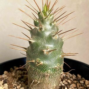 サウンデルシー さん✨ Pachypodium saundersii (和名:白馬城) 今日から4月~😆✨ 新しい始まりの季節・・・ さぁ頑張っていきましょー\(*°∀°*)/🌸 今月もどうぞよろしくお願いします😊✨ 水やりしたら・・・お目覚めになりました😁 今年は少しでも大きく育って欲しい~😍💕