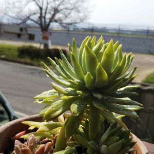 今日は多肉の寄せ植えなどはできなかったけど、水やりのあとにたくさんpic撮ったので、連投させてくださいね🎵 これまた名前がわかりませんが、いい感じで伸びてきた✨ 奥に見えるソメイヨシノ…まだチラホラだけど、来週には満開かな🌸楽しみ❗️
