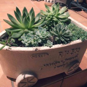 私の影響で多肉植物に目覚めたお友達がいて、その子の為に寄せ植えを作ってみました。 ・ もりもりしてるだけで癒されます😍 ・ 気に入ってくれるといいな。