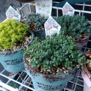 帰省先の多肉天国で狩ってきた子達🌵🌿 先週、その多肉天国のインスタで、前から欲しい❗️と思ってたいちかわふぁーむさんのセダムが入荷したという情報を得て、帰省翌日に急いで乗り込んだら、やっぱり欲しかったのは売り切れてました_| ̄|○ 全然いちかわふぁーむさんのセダムちゃんに出会えません😂 そのかわりに お花が可愛いクーペリー💕 店舗で全然出会えなかったスプワンちゃん(でも伸び伸び) 紅葉が楽しみなヒスパニクムプルプレア💜 アロマティカス🌿をゲット😁
