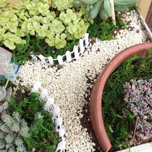 やっと、セダムを植えました(ㅇㅁㅇ;;)その1 まだ、割り箸支え中、増築途中の、セダムの箱庭