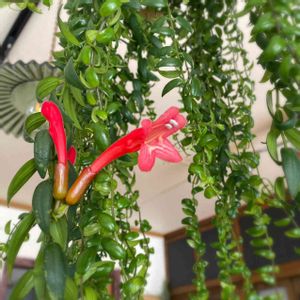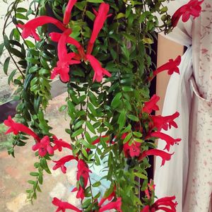 エスキナンサスラスタです❣️ クルクルの葉っぱがカワイイです🌀 赤いお花が沢山咲いていてカワイイな〜と思っていたら そのお花だと思っていた部分から更にお花が😆🌸🌼 とっても鮮やかな赤です🥰