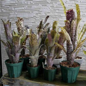 子株さんたち。 いろんな品種の子株で大きさも違いますがですが、夏を越えてしっかりと育ちました! それぞれ特長が出てくれて、これなら無事に安心して冬越しを迎えられます。 これらの株の親株はかなりくたびれてますが、実はウチに来た時からほぼこんな感じです😖 よく見えませんが、左端はダランと葉が広がり、左から二番目の株も徒長し貧弱、右側の二本の株も柄が貧弱で葉も痛んでます。 ビルベルギアは、見応えがあり鑑賞に値する株は大変高価ですが、このように痛んだり生育がもう一つの株はかなりリーズナブルに入手が可能です。 なので、いわゆる導入株としてお迎えして子株から作り直しすれば良いので、遺伝子買い🧬しある程度時間をかけて育て上げる楽しみもあります。 左からグルーヴィ、ブラックパール、スターダスト、オーレ、どれも来春からの育成が楽しみになりました😋