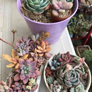 備忘録 多肉の寄せ植え ずっと探していた七福神をタナベフラワーさんからお迎えしました。 手前左の寄せ植えは、寄せ植えした余りたちをつめ込み😅 ピンクピンクの鉢になりました。