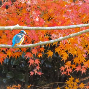 紅葉の季節の過去picから トリの日に参加させて頂きます♪ 〈モミジとカワセミ〉 ☆1☆2☆3 カワセミ雌 ☆4☆5 カワセミ雄 2022年12月5日 ビオトープ池のほとり
