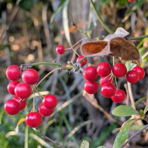 今日のお花 サルトリイバラ サルトリイバラ科 シオデ属 雌雄異株 雌雄異花 車で山道を走ってサルトリイバラの赤い実を探してきました🚙 ほぼ葉は落ちていたので すぐに見つかりました😄🎶 フォロワーさんの投稿で同じ仲間のシオデ、タチシオデの果実を見せていただきましたが果実の色は黒でした● 対照的な果実の色に ビックリ! サルトリイバラ🔴 シオデ、タチシオデ⚫️
