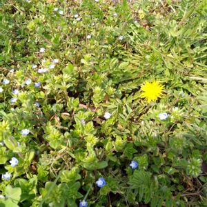 いつもの散歩道 タンポポとオオイヌノフグリ