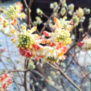 三椏が開花してました🎵 黄色に赤色が混在して、華やかでした😊 2019.3.9 撮影