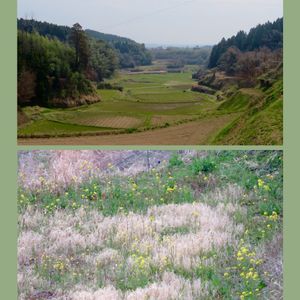 熊本からの帰り道♡ 野焼きの為 阿蘇を通れず、まわり道♪ 山あいの棚田♡素敵な光景♡大好きな景色♡ 枯れたススキと菜の花! 朝晩は冷え込み、日中は暖かな陽射し、 春と冬のせめぎ合い💕