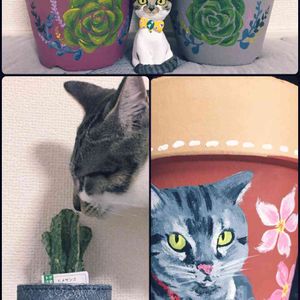 多肉植物 3.5 [左下] セバスたんの鉢カッコいい(☝︎ ՞ਊ ՞)☝︎ [右下] 母よりオーダーで祖母の家のニャンコ 3