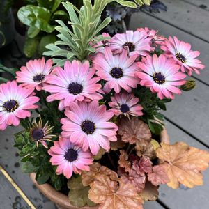 暖かくなって一気に咲いてきました😃 🌿オステオスペルマム トレードウィンズ ローズ 🌿ヒューケラ バタークリーム 🌿ユーフォルビア シルバースワン