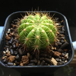 おはようございます😄 一斉紹介(12)です〜❣️ エキノプシス属③ 四天王残り御二方一気に紹介です🥰 ⭐️(653)花盛丸(かせいまる)❣️ Echinopsis tubiflora❗️ "短毛丸"より気持ち綾が少ないとの事ですが、個体差があるのでどうでしょうか❓ 我が家の子は同じですが🧐 ある程度大きくなると突然に中刺がニョキニョキと伸び2cm位に伸びます❗️ そして名前の由来である花が❗️"短毛丸"等と違い株径4〜5cmから花芽を付け花径10cm位の花を咲かせる、また花数が多い程花径が小さく成る❗️ 逆に仔吹は株径が8cm以上にならないと付けない❗️ 花は白花 夜咲き、淡いピンクの花の混雑種も、昼咲きに改良された子も❗️🥰 写真の子はまだチビっ子ですが、株径が5cm になったので来春は花が見られるかなぁ🥰 ⭐️(344)金盛丸(きんせいまる)❗️ Echinopsis calochlora❗️ 肌は黄緑色、刺は細く黄色い、綾は丸くモコモコとして、朝日を浴びると"金色"に輝く、私の大好きな子❣️🥰 他の子より水を好み、寒さに弱い(弱いと言ってもエキノプシス❗️強健です) 花は白花、夜咲き❣️