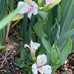 おはようございます⛅️ ガーデニング日和です👍 アルストロメリアの白が咲きました🙌🙌 想像してたより清楚でお上品✨✨✨ 増やしたいわ〜🥰 後1種類は芽も出してません、チン🥲