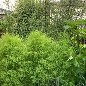 おはようございます☀ セミが元気です。 今年のコキア、菜園に3本移植しました。 大きくなっているけど肩身の狭い思いをしています😅
