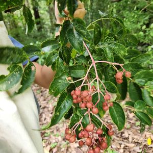 里山に入るまでの林縁に実を発見‼️ 1️⃣2️⃣ウワミズザクラ 実の色が美しい。 3️⃣4️⃣ゴンズイ(権萃) 別名:クロクサギ 花言葉: 「一芸に秀でる」「謙虚」「特技」 葉: 奇数羽状複葉、縁には鋸歯。 サンゴジュと間違いそうになったが葉の様子から推測しました。 見慣れているゴンズイは黒い実がのぞいているので、わかりやすかったのですが、まだ弾けていません。