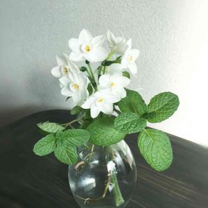 中も白い水仙。名前はわかりませんが、実家からやってきたのでしょう。 綺麗で可愛くて・・・テーブルに飾ったら、匂いがやだと子どもたちに追いやられてしまいました(泣)