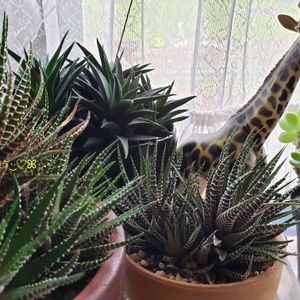 こんばんは🌜 🏷十二の日 参加させてくださ〜い🙌 GSは毎日何かしらのお祭りがあって 楽しいですね\(•ㅂ•)/ワッショイ↑ 2階の娘の部屋の出窓に間借りしている 硬派ハオルチアたち😊 左の十二の巻は息子のです😅 私が育ての親になってます😅 今日はキリンさんが様子を見に来てますよ〜🦒🎶 因みにこのキリンも息子のでGS初登場です・*・:≡( ε:) 硬派達そろそろお水あげなきゃね🚿(^_^;ゞ