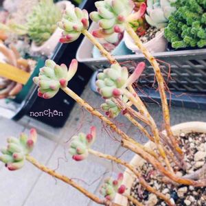 ライムアンドチリ 花芽が沢山出て蕾も膨らんで来ました🏵 明日は仕事も休みで暖かいみたいなので多肉日和で嬉しいです♡*ˊᵕˋ*
