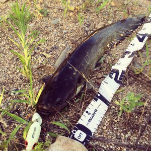 近くの川でナマズ狙いが(-_^)雷魚釣れちゃいました。 ま〜なんでも釣れると嬉しいモンです(苦笑)