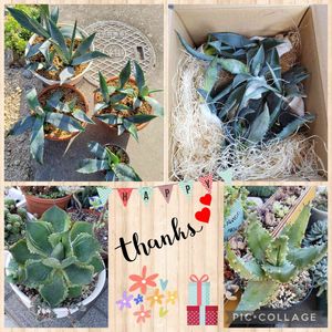 こんにちは☀ お休みなので本日2枚目✌ 三連休最終日にhidepuさんから すっごい素敵便🎁が届きました‧˚₊*̥( ✪ω✪ )‧˚₊*̥ 前に私が子株欲しいなぁと言ったのを覚えて下さってて子外したから送ってあげるよ〜とご連絡頂き今日🎁届いたんですが! な、なんと開けてびっくり10株も入ってて 思わずえー‼(•'Д'• ۶)۶と声が出てしまいました😆🎶 凄いでしょう(´,,> <,,)♡ すぐ植えて並べたらアガベ屋さんになった気分で これまたヾ( 〃∇〃)ツ キャーーーッ♡ 今月は誕生日🎁を沢山貰えて幸せです💕 hidepuさん本当にありがとうございました(*ᴗˬᴗ)⁾⁾pekori🎵 GSの繋がりに感謝致します🤗 ↙うちの雷神錦と↘アクレアータ阿麗錦もついでに見てやって下さい(⺣◡⺣ก)💦 これからどう育っていくのか… あ〜興奮して眠れない〜( ⸝⸝˃ ᵕ ˂⸝⸝ )♥