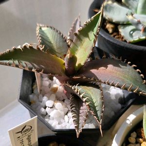 🐱さん あまり葉が長くならずに、今のところ 育ています。スポット→パネルに移動 したので、赤みはだいぶ抜けました。 🐊🐢の鋸歯、よさげ。あとはブツブツが でてくれれば。 エボリさん同じ日に播種したのに、倍以上 差が出てます。葉色・鋸歯・鋸歯の色 十アガベ十色てとこですな!