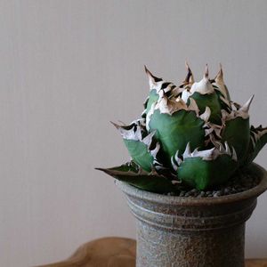 おはようございます🌿 アガベ・チタノタ レッドキャットウィーズルです 少しずつ葉が展開中 開きすぎないようになるべくじっくり育てたい 今日も焦らず☕