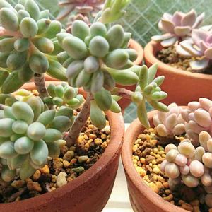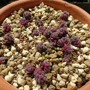 おはようございます🎵 今月は植え替え作業で大変😣💦💦 鉢も足りない状況なのに、狭いベランダで洗濯物を避けながら右往左往して多肉棚から植え替え済みの鉢を落として割ってしまった😭 お気に入りの鉢だったから落ち込み度はもう相当😖⤵️⤵️⤵️ 気を取り直して投稿します😣✊ 伸びてきた黒いプチプチ玉蓮⬆️⬆️⬆️ 白い粉がどんどん取れてきて、とうとうこんな色に😅 プチプチチョコレート🍫