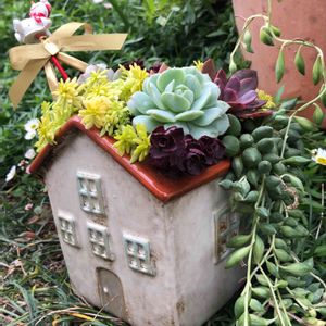 赤い屋根のおうちに教えてもらいながら寄せ植え😊もりもりです💕